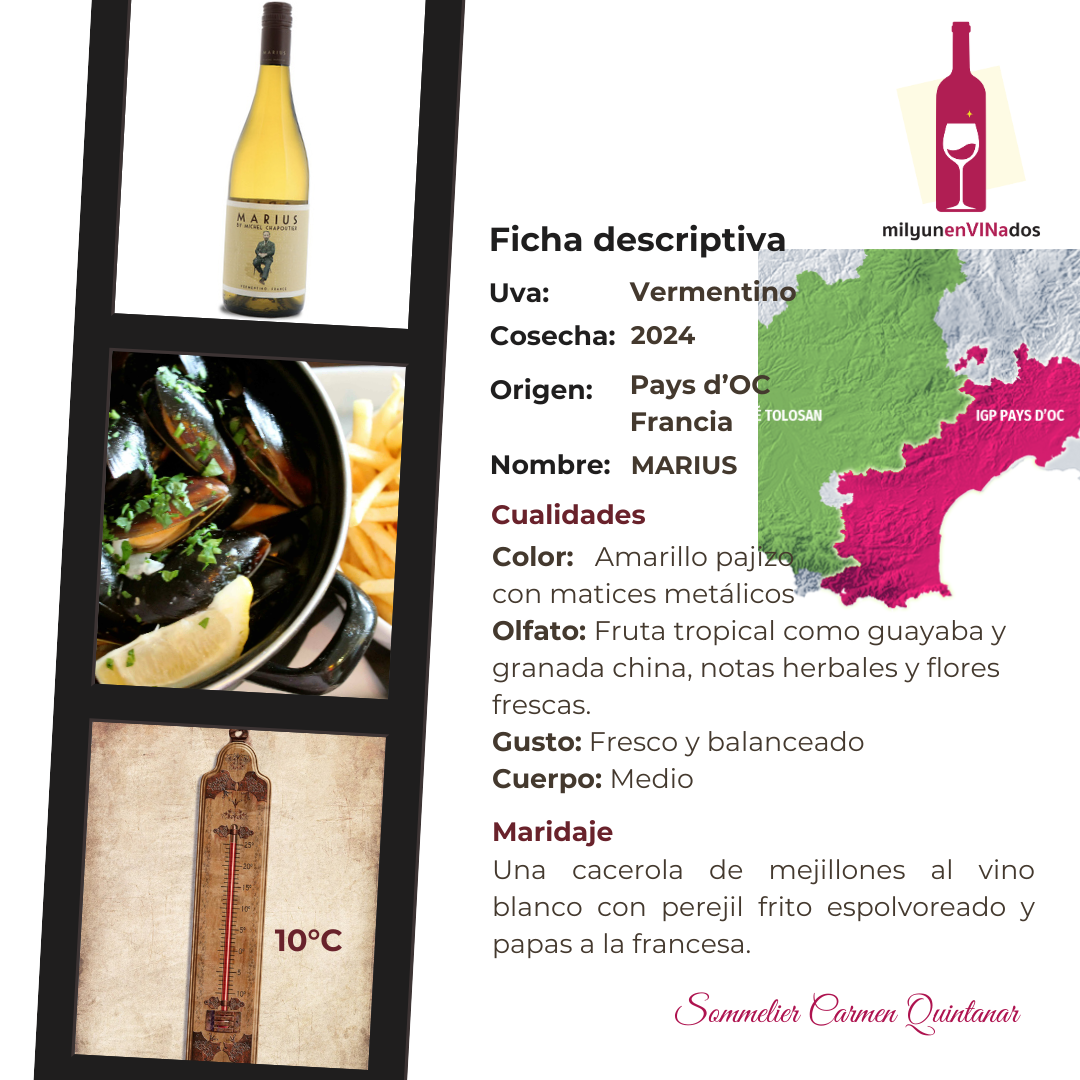 Uva o DO: Vermentino Pays d'OCTemperatura de consumo: 8-10°C Ver ficha técnicaVermentino Pays d'OC Francia Marius$315.00PrecioCantidad*Agregar al carritoRealizar compra